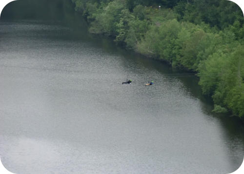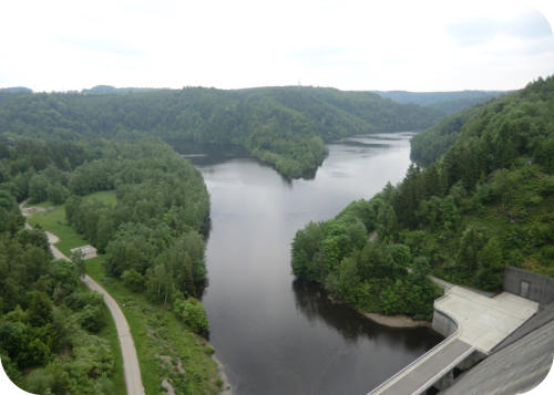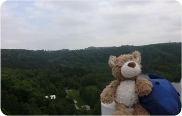 RappbodetalsperreHier ist es ja richtig toll!! Und das finden nicht nur wir, auch unzählige Biker besuchen diesen Ort und machen hier Rast. Was für ein Blick! Man kann sogar übers Wasser fliegen! Ob das auch Teddys und Fische können? Oder wären wir da die ersten? Heute gucken wir zu, wie andere ihren Spaß haben.